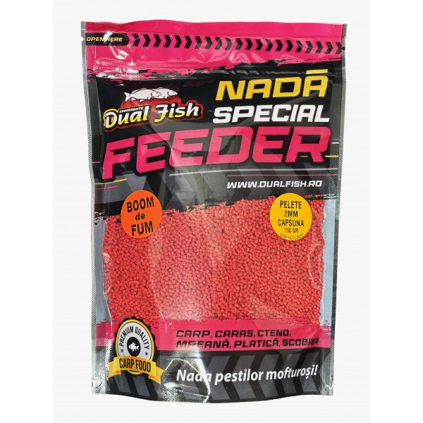 Peletele Boom de Fum Special Feeder 2 mm – aromă Căpșună, Dual Fish, sunt alegerea perfectă pentru pescarii care caută o nadă clar vizibilă și extrem de atractivă. Cu efect fumigen puternic, aceste pelete creează în apă un nor roșu intens, care captează rapid atenția peștilor și îi direcționează spre zona momitorului.