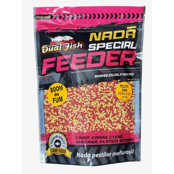 Peletele Boom de Fum Special Feeder 2 mm – aromă Căpșună & Usturoi, Dual Fish, sunt concepute pentru pescarii care au nevoie de o nadă cu impact instant, atât vizual, cât și olfactiv. Efectul lor fumigen creează în apă un nor spectaculos alb-roșu, extrem de atrăgător pentru peștii aflați în căutarea hranei.