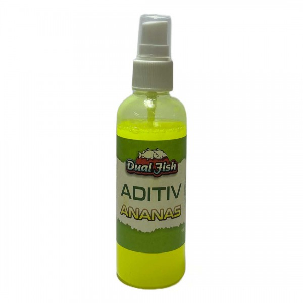 Aditivul Atractant Spray Dual Fish cu aromă de ananas este conceput pentru a oferi momelilor o aromă fructată, intensă și persistentă, capabilă să atragă rapid crapul și carasul. Formula lichidă este îmbogățită cu substanțe aromatice concentrate și are proprietăți fluorescente, care creează binecunoscutul „efect de nor” atunci când intră în contact cu apa.